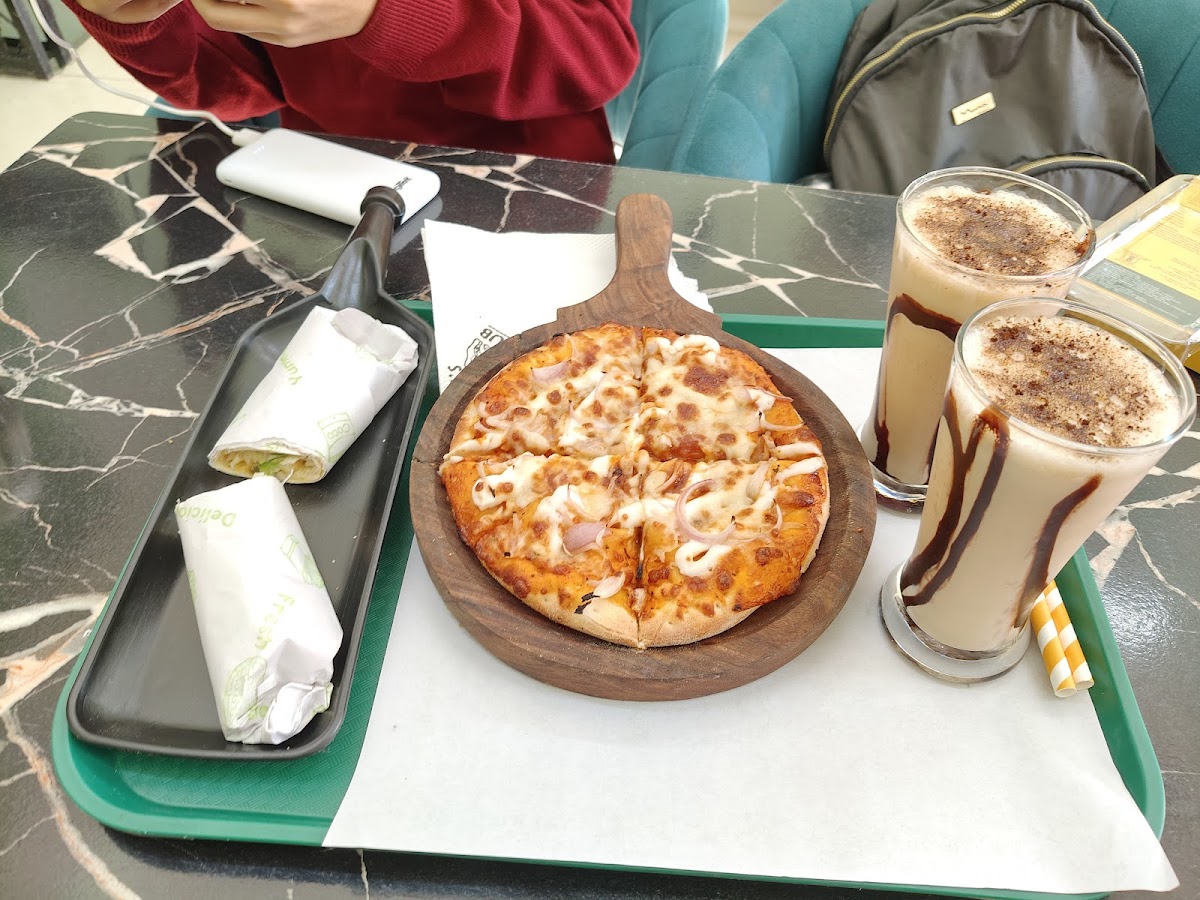 This pizza is very tasty and fabulous, you can come here anytime and on Wednesday and Friday there is free pizzas and the taste was too good, it was bestest pizza . I suggest you all to come here and eat whatever pizza or coffe u want. U can also get snacks and all here!